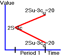 Let S denote the current stock price and assume that at the end of one period the stock value is either 10 or 40.  We will study European put and call options with a strike price, X, of 20 when the risk-free interest rate is zero.
